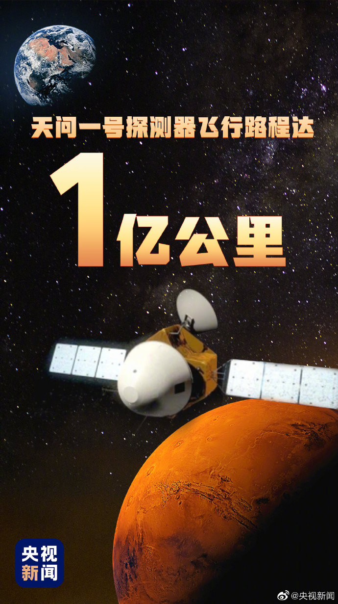 据国家航天局探月与航天工程中心专家介绍,当天问一号探测器到达火星时,探测器距离地球约1.95亿公里,实际飞行路程约4.7亿公里。